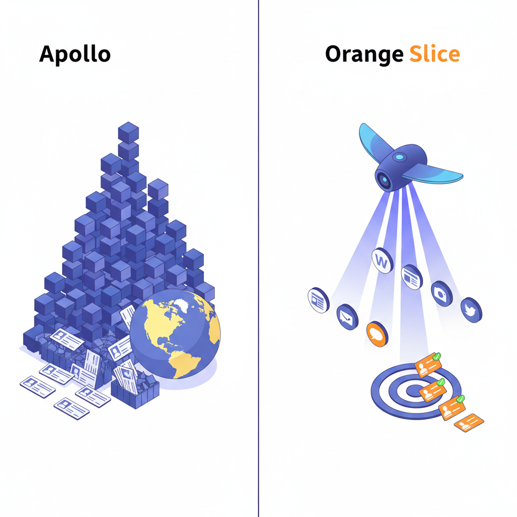 But here's the catch: Apollo's data quality has been flagged as inconsistent, with reports of outdated contacts creating friction for outbound teams. Meanwhile, Orange Slice focuses on surfacing prospects who are already showing purchase intent rather than simply expanding list volume.
